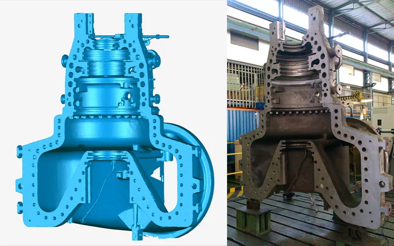 Using sophisticated 3D coordinate measuring equipment, a part can be fully modeled to a high degree of accuracy. The model is then used to generate manufacturing drawings for the new part. Parts may be turned or cast. For castings, our patternless rapid prototyping technology reduces lead times for quick deliveries for your outage